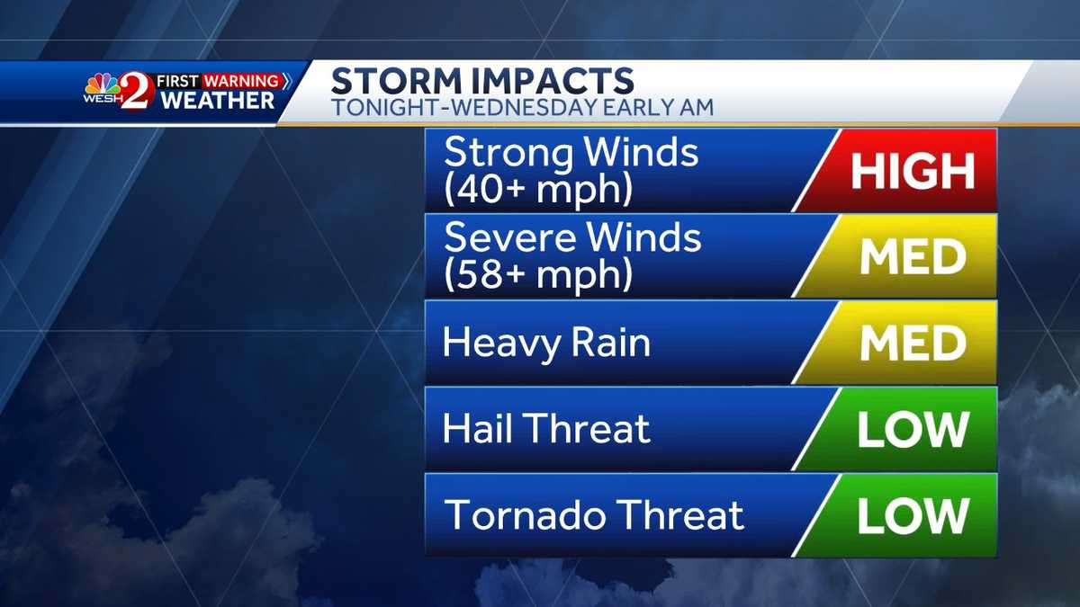 WESH 2’s First Warning Weather team is tracking a powerful storm system that is expected to move through central Florida on Tuesday evening. watch the radar Incoming storms carry a level 2 out of 5 risk, which means they will be isolated, strong to violent. These storms will bring strong gusty winds that can exceed […]